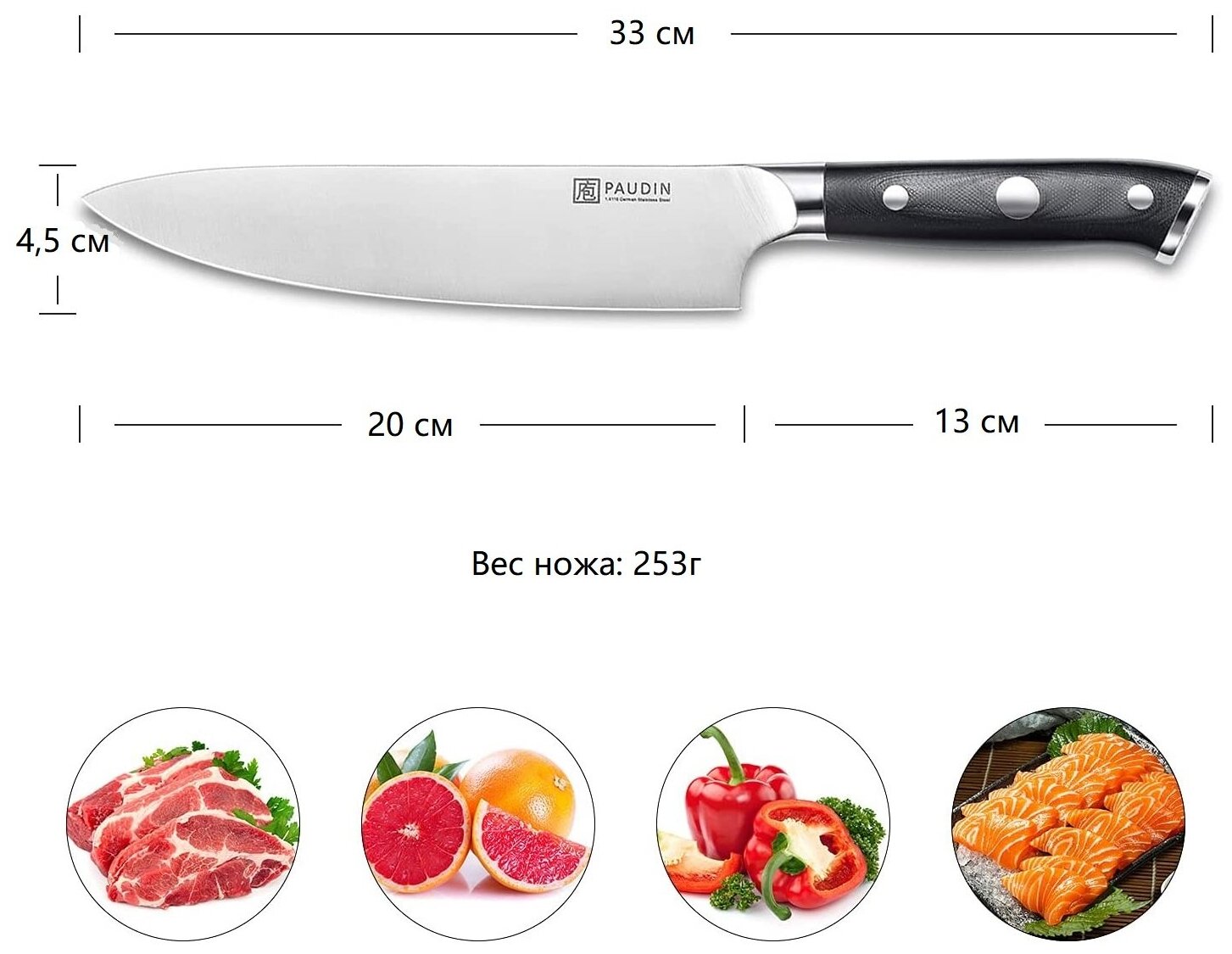 Отзывы на PAUDIN Pro Нож кухонный профессиональный шеф-повара разделочный 20 см с балансировкой веса
