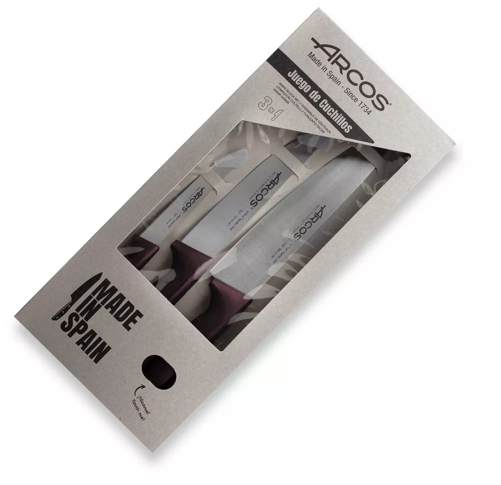 Набор из 3-х кухонных ножей в коробке Niza, цвет бордовый, сталь кованая, Arcos, Испания, 818045