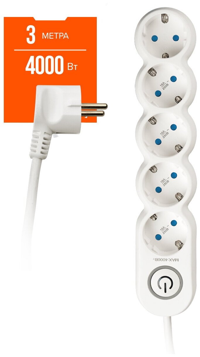 10 цен на Удлинитель JAZZway c заземлением и выключателем 3м EX-05GS-300