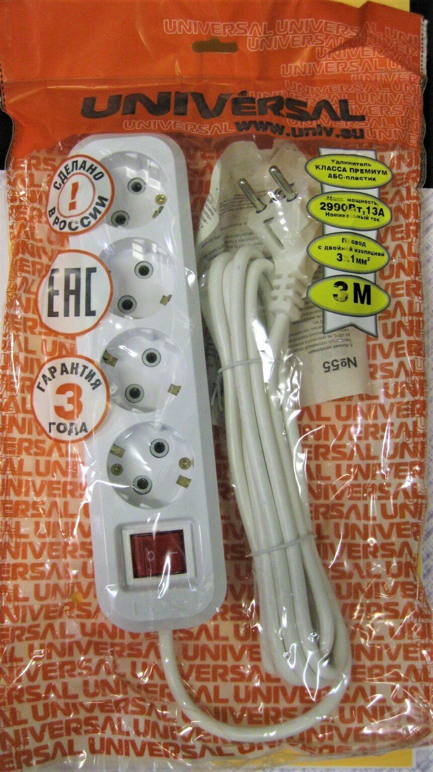 Удлинитель UNIVersal У6-639М (639М-02), 3 розетки, 2 м, б/з, 6А / 1300 Вт