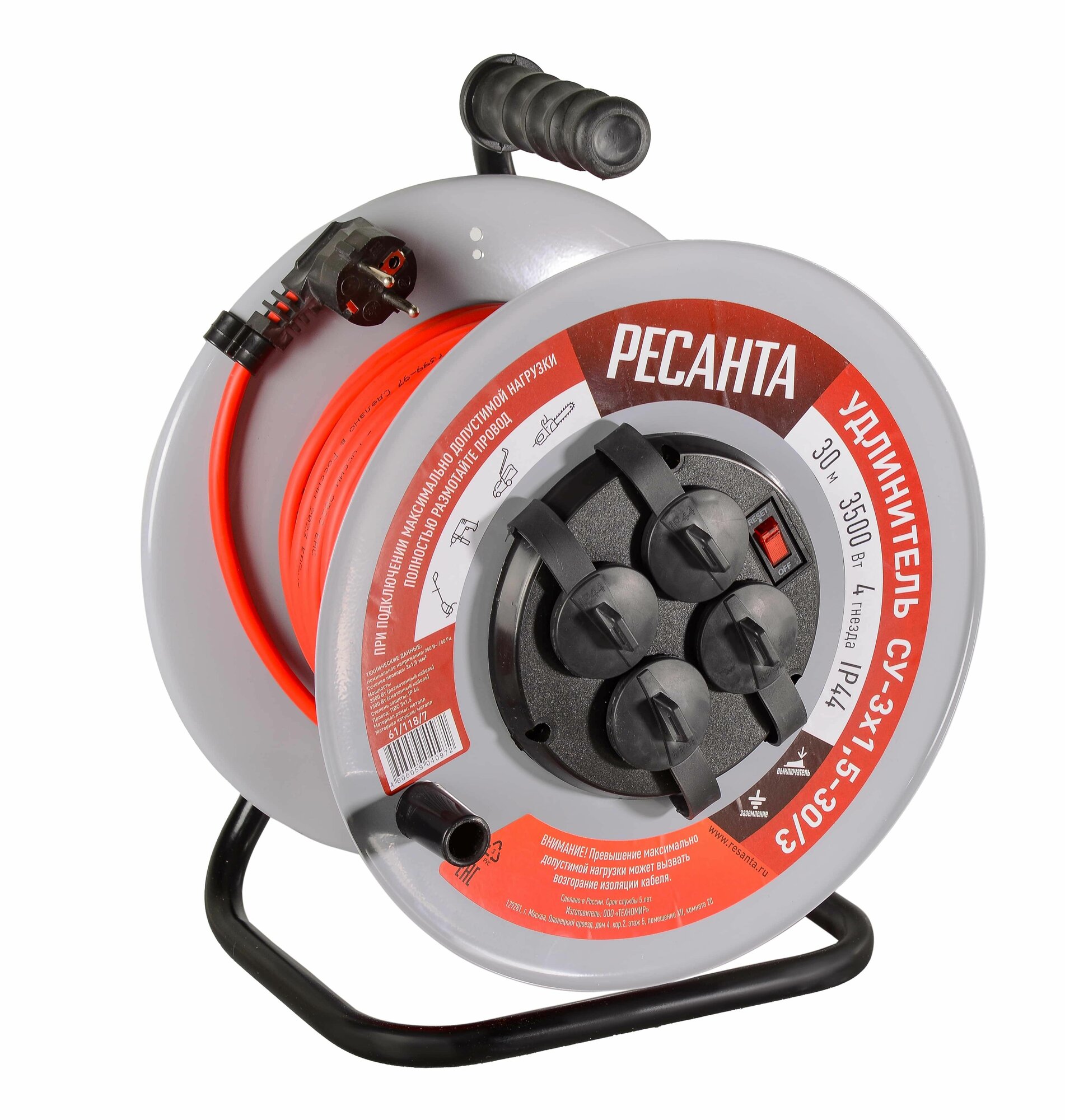 Отзывы на Удлинитель силовой на металлической катушке, СУ-3х1,5-30/3 (с выкл., 4 розетки, IP44) Ресанта
