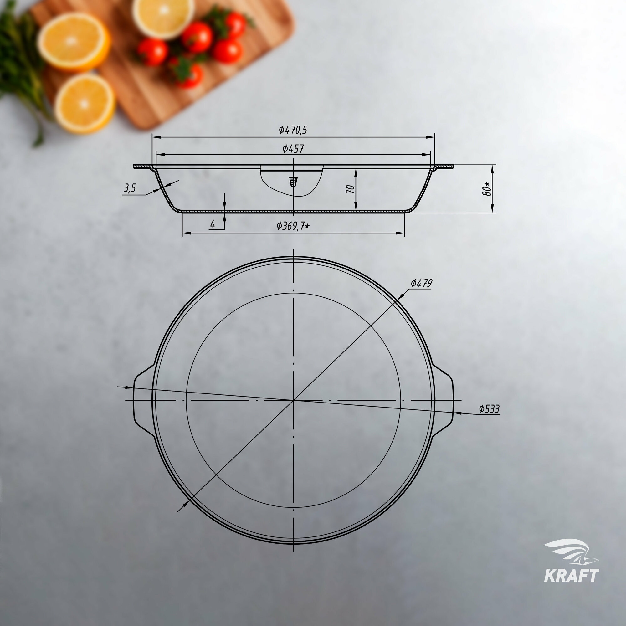 Отзывы на Сковорода чугунная 46 см с литыми ручками "ушками", высота стенки 7 см