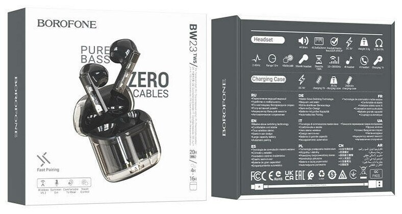 Наушники BOROFONE BW23 Crystal bean Transparent Edition в чёрном цвете (black) информация: