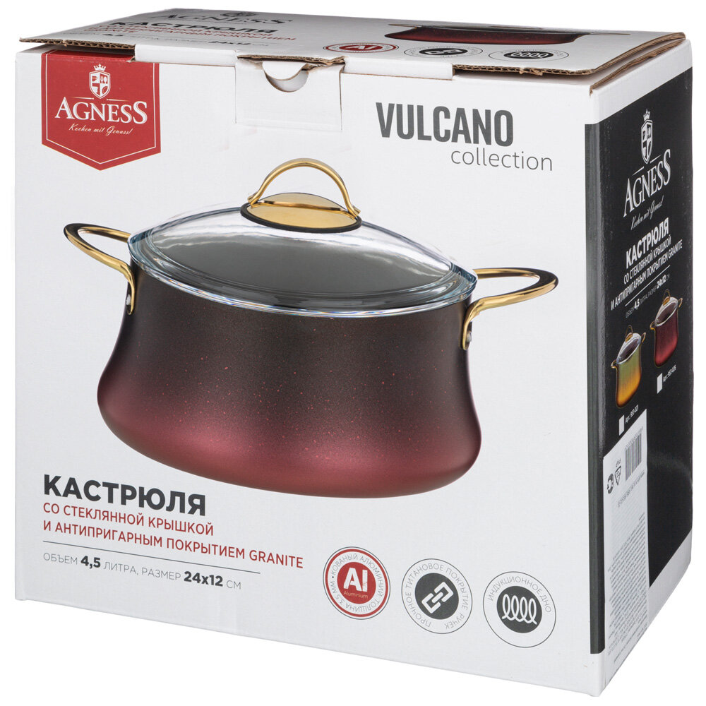 Кастрюля 953-026 agness серия vulcano 4,5 л информация:
