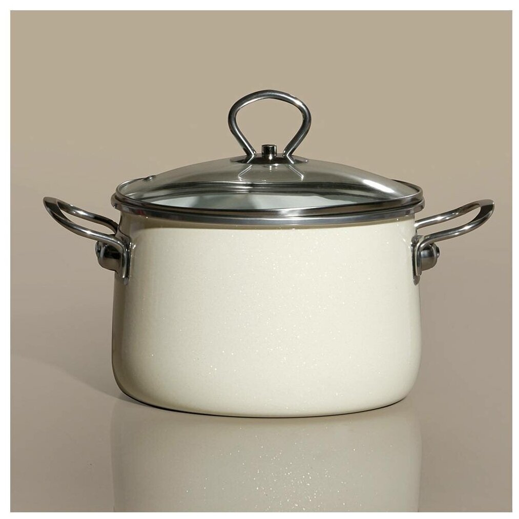 кастрюля эмалир. со стекл. крышкой с эффектом металлик серия deluxe цв:молочный 4,1 л. 20х13,5 см 3 885 ₽