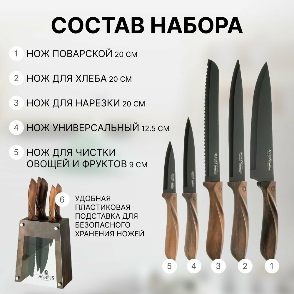 Набор ножей на пластиковой подставке, 6 предметов Agness (157314) информация: