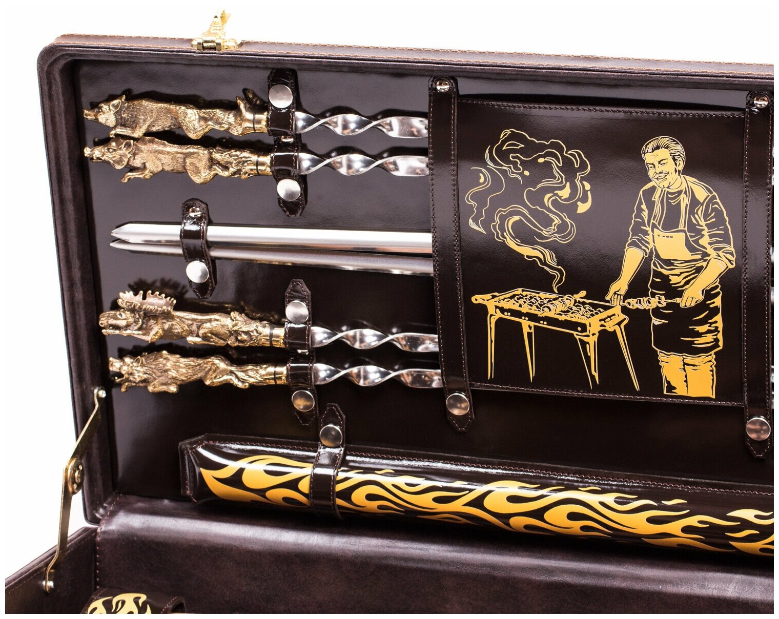 Шашлычный набор на подарок в кейсе для пикника, шампуры от производителя, шампур с деревянной ручкой