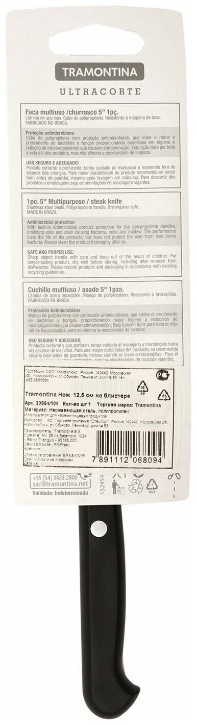 | Дополнительная информация | Нож TRAMONTINA Ultracorte 12,5см для стейка |