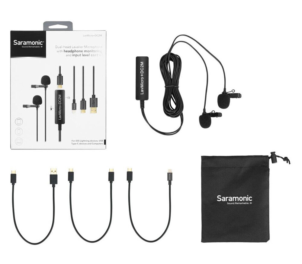 10 цен на Двойной микрофон Saramonic LavMicro+DC2M, 2 петлички + адаптер USB / Lightning