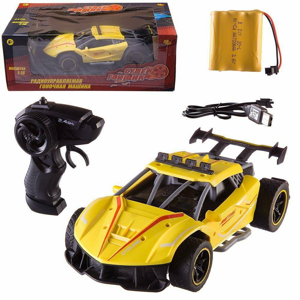 Машинка на радиоуправлении Abtoys гоночная 2,4Ггц, резиновые колеса (желтый, красный), аккумуляторный блок 1:18 C-00477 информация:
