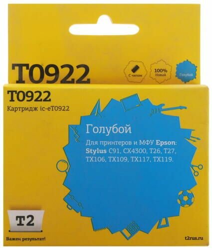 10 цен на IC-ET0922 Картридж для Epson Stylus C91/CX4300/TX106/TX117, голубой, с чипом