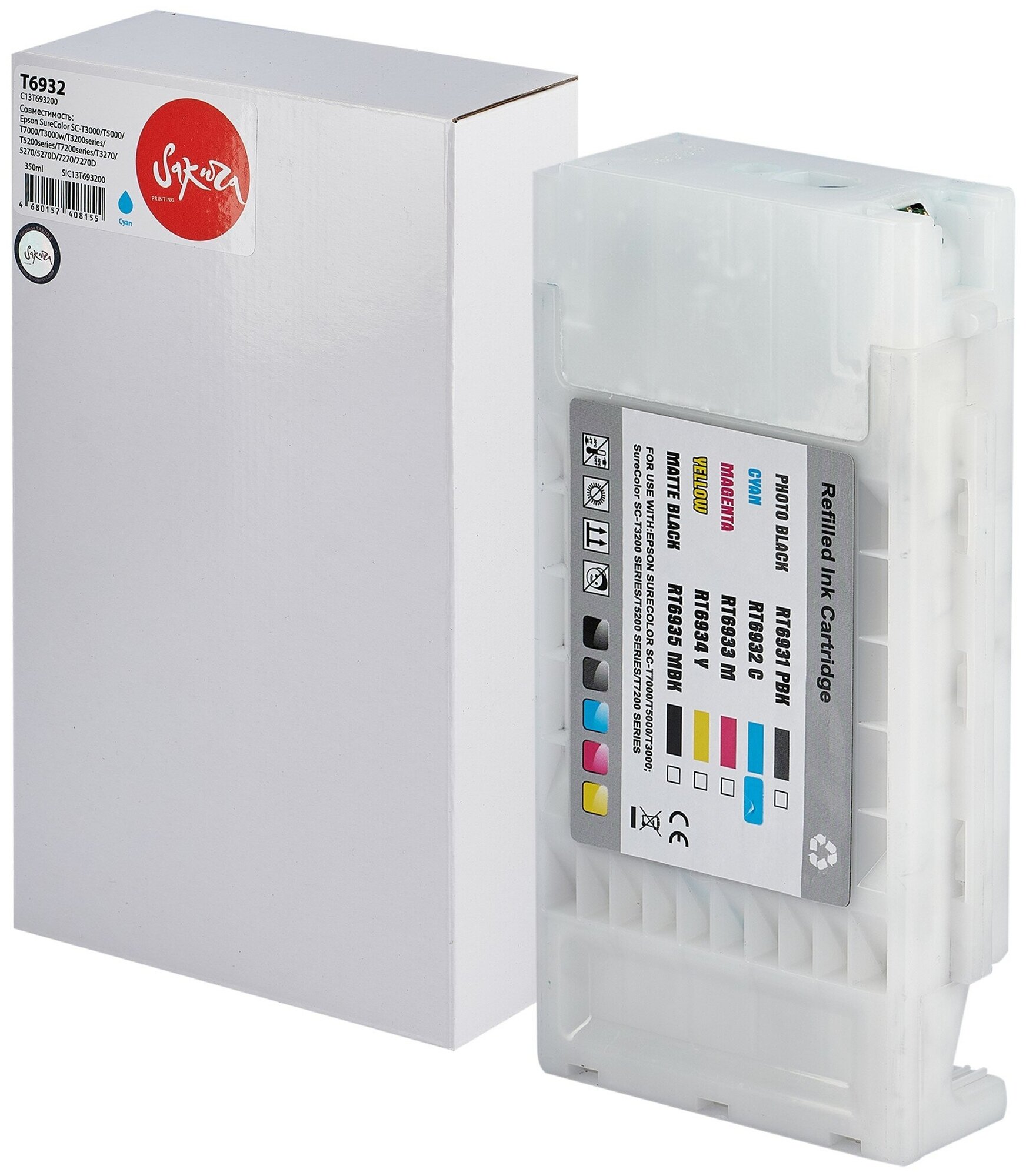 Струйный картридж Sakura C13T693200 (T6932 Cyan) для Epson, голубой, 350 мл. информация: