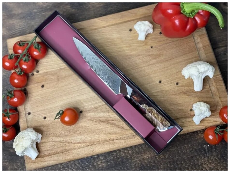 Tuotown Нож кухонный «Слайсер» 20 см для нарезки, приготовления суши, сашими и роллов. Fermin. Сталь 1.4116, рукоять Pakka. Плюс фруктовый нож!