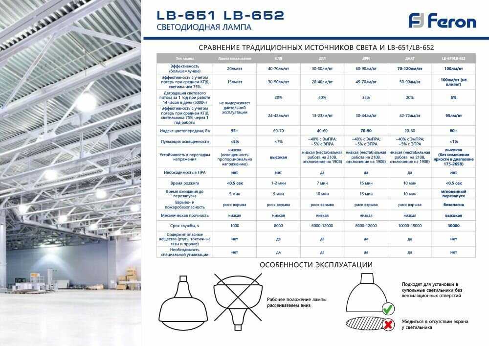 Лампа светодиодная Feron LB652 E27E40 150W 6400K информация: