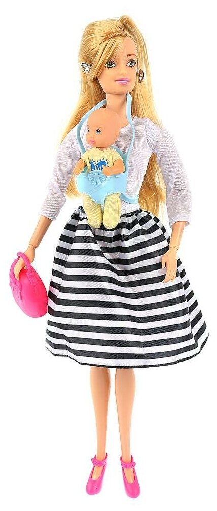 | Комплектация | - кукла; - пупс; - аксессуары для ухода за младенцем; - классическая розовая сумочка; - голубая сумка-переноска для малыша. |