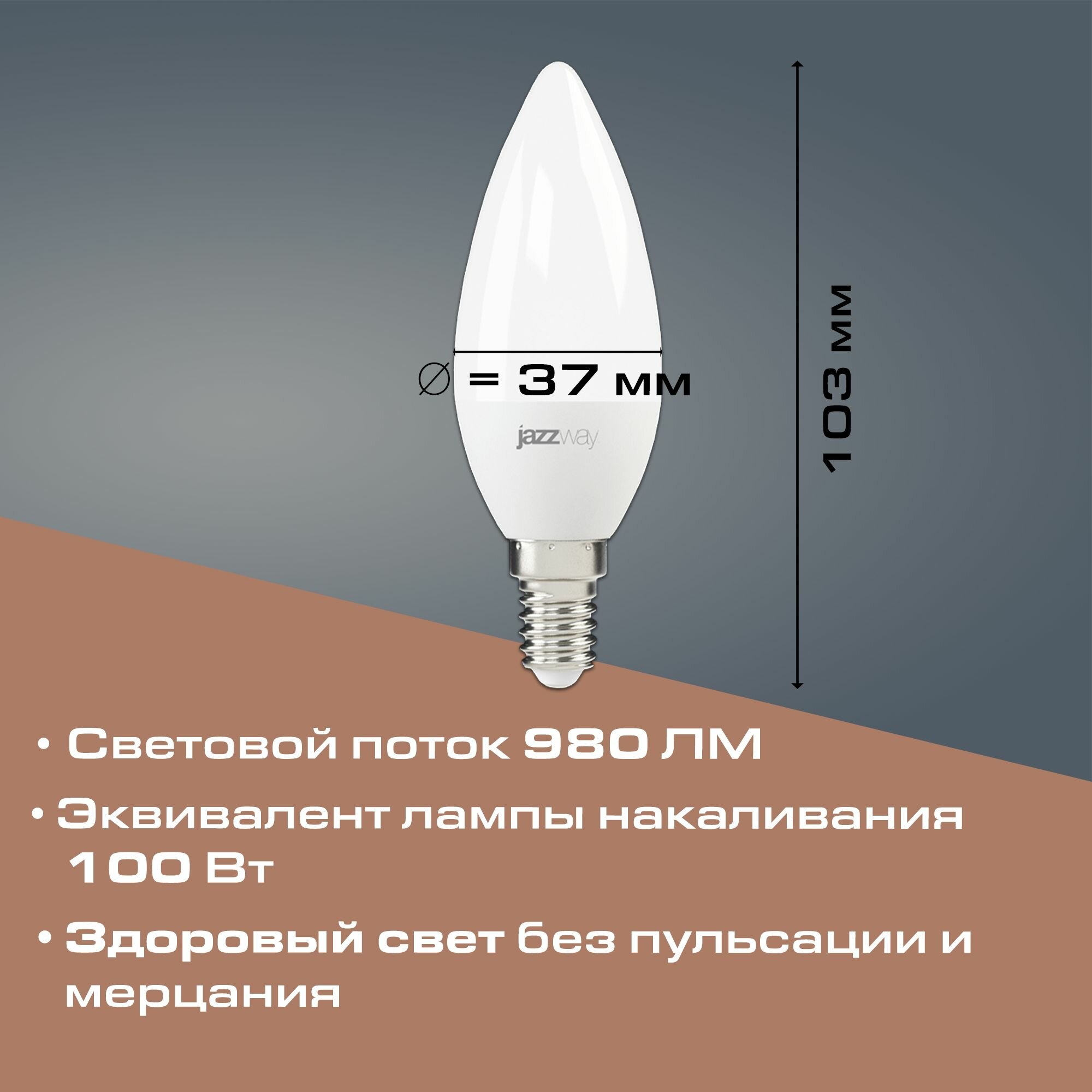 Светодиодная лампа JazzWay PLED Super Power C37 9W эквивалент 75W 3000K 820Лм E14 свеча (комплект из 10 шт)