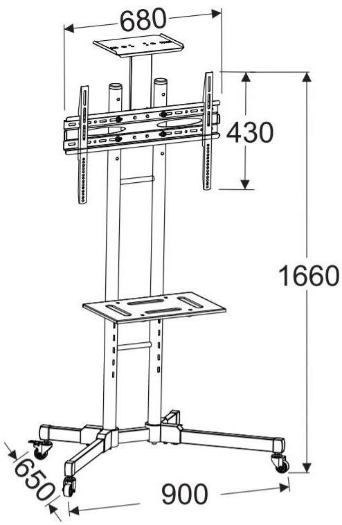 [M55] Мобильная стойка Wize Pro [M55] для дисплеев 32 65, Max VESA 600x400 мм, высота 180 см, вертикальная регулировка, регулируемая полка для медиапл информация: