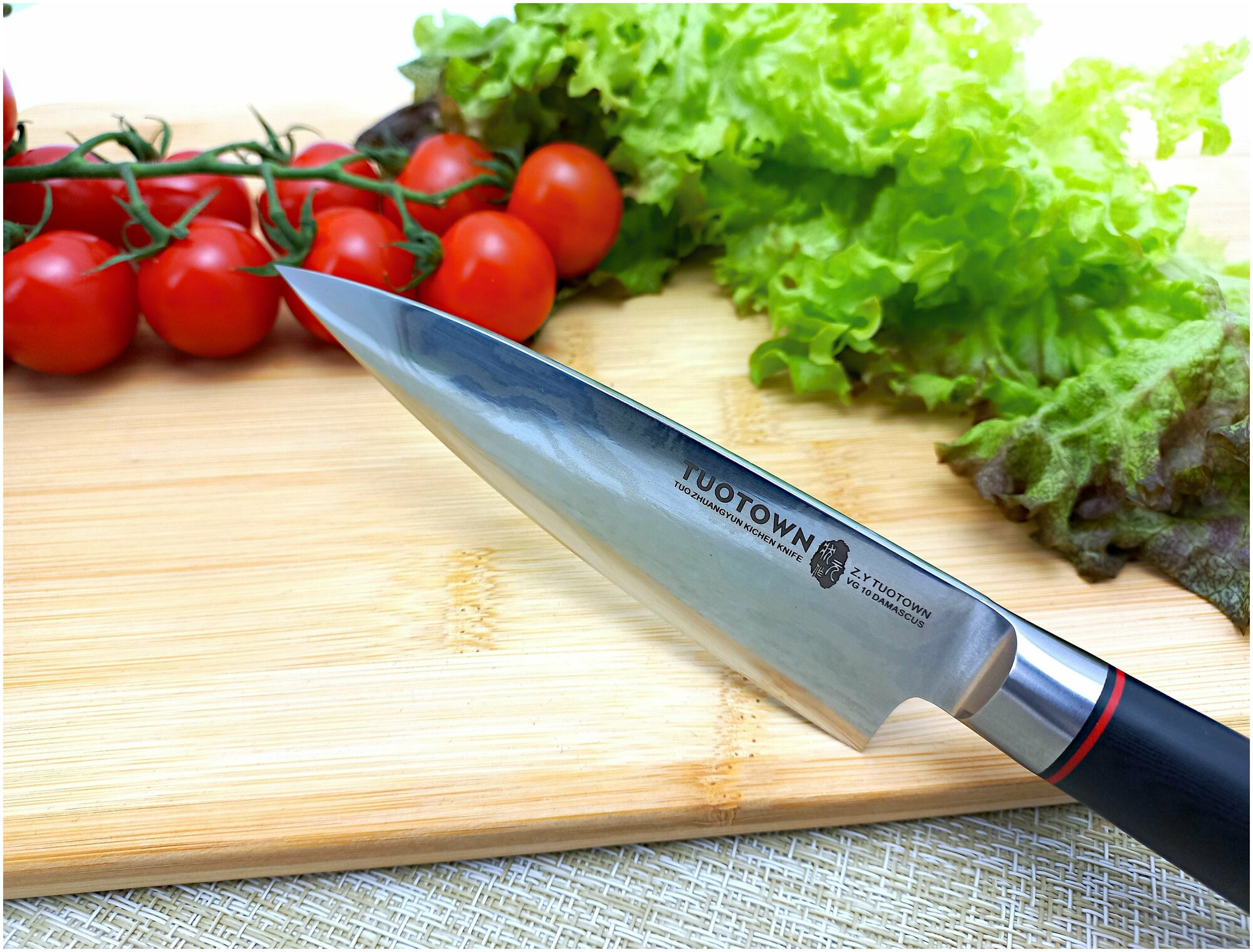 Отзывы на Нож кухонный профессиональный ,TUOTOWN, длина клинка 13 см, сталь ламинация VG10, рукоять G10