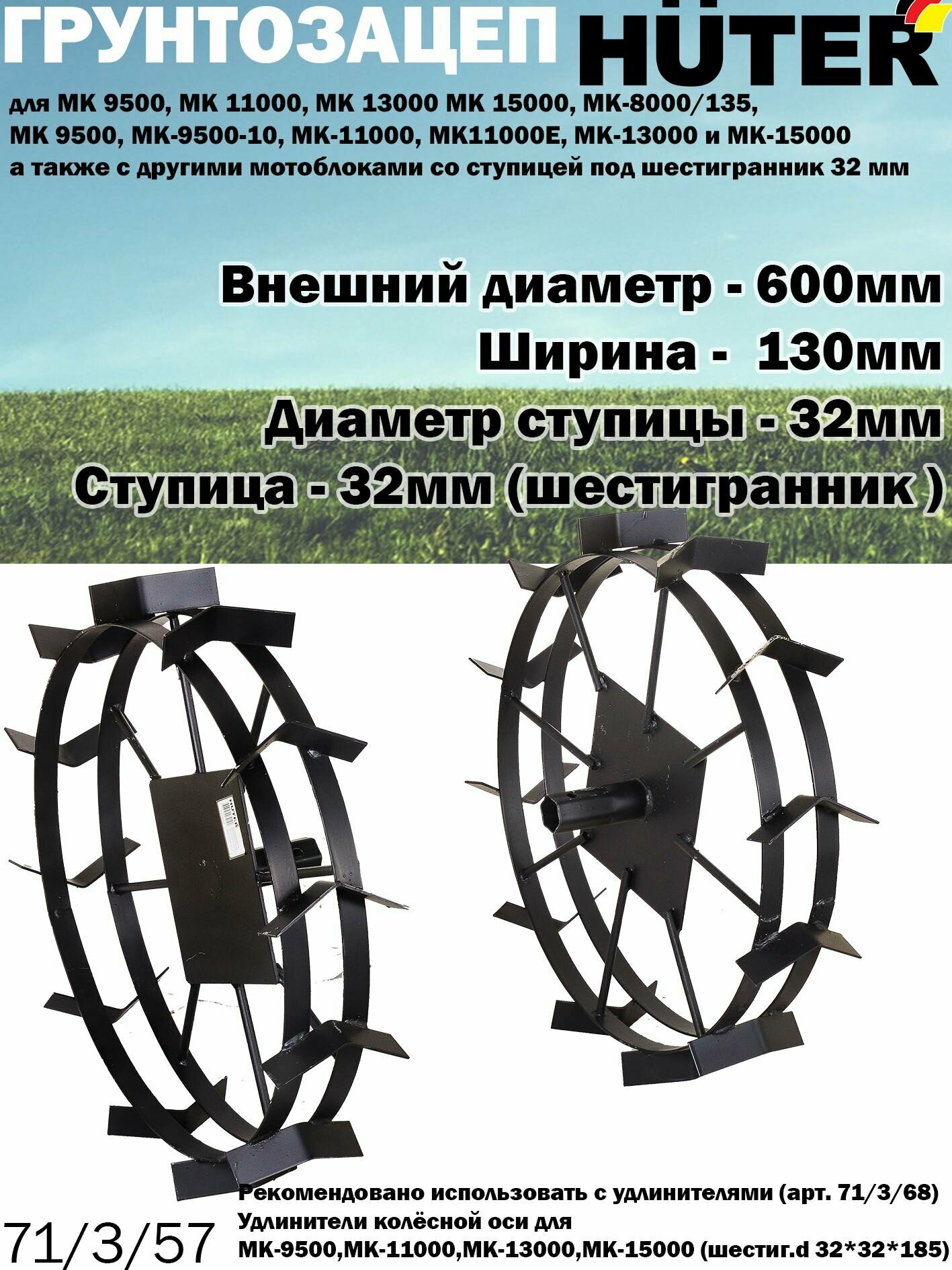 10 цен на Грунтозацеп HUTER для мотоблока // высота-600, ширина-130, шестиг.-32мм, комп.-2шт., окучивание