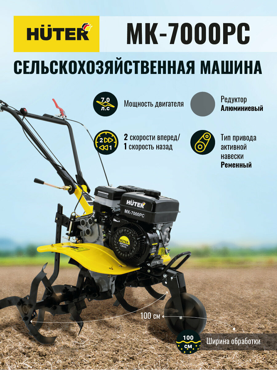 Сельскохозяйственная машина мотоблок МК-7000PС без колес Huter, 5150Вт, 7лс, 100см информация: