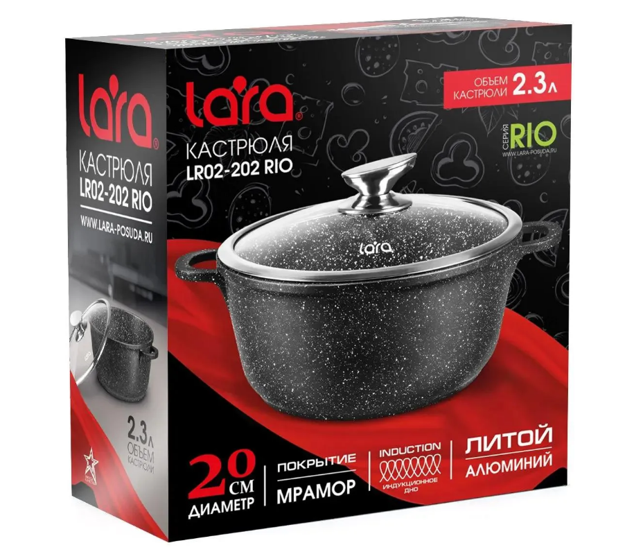 Отзывы на LR02-202 Кастрюля LARA серия Rio 20см, 2.3л, мрамор, капсулированное индукционное дно, крышка