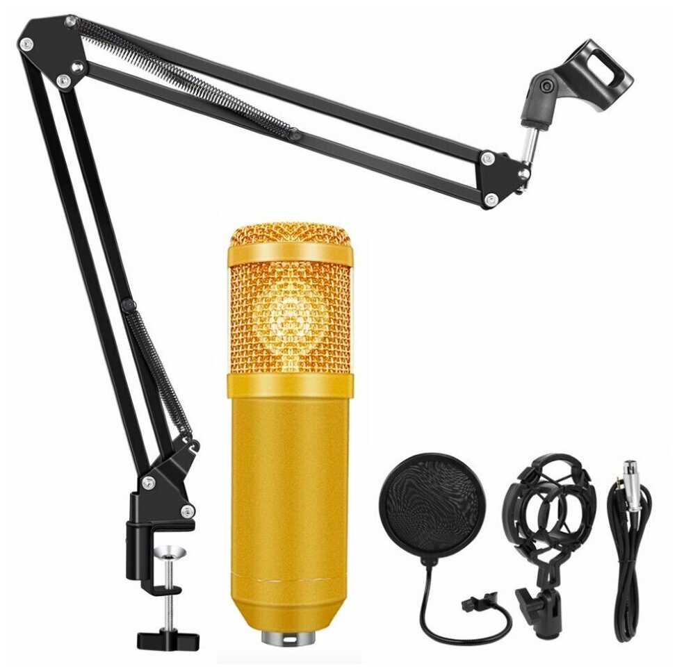 10 цен на Микрофон студийный конденсаторный BM 800 с подставкой Золотой