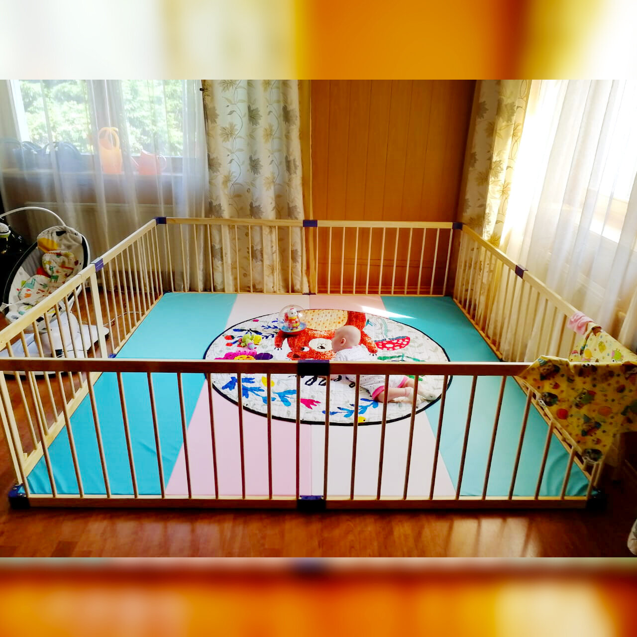 Большой деревянным манеж LYALYALUX 2.2х1.1 коврик-мат цветной
