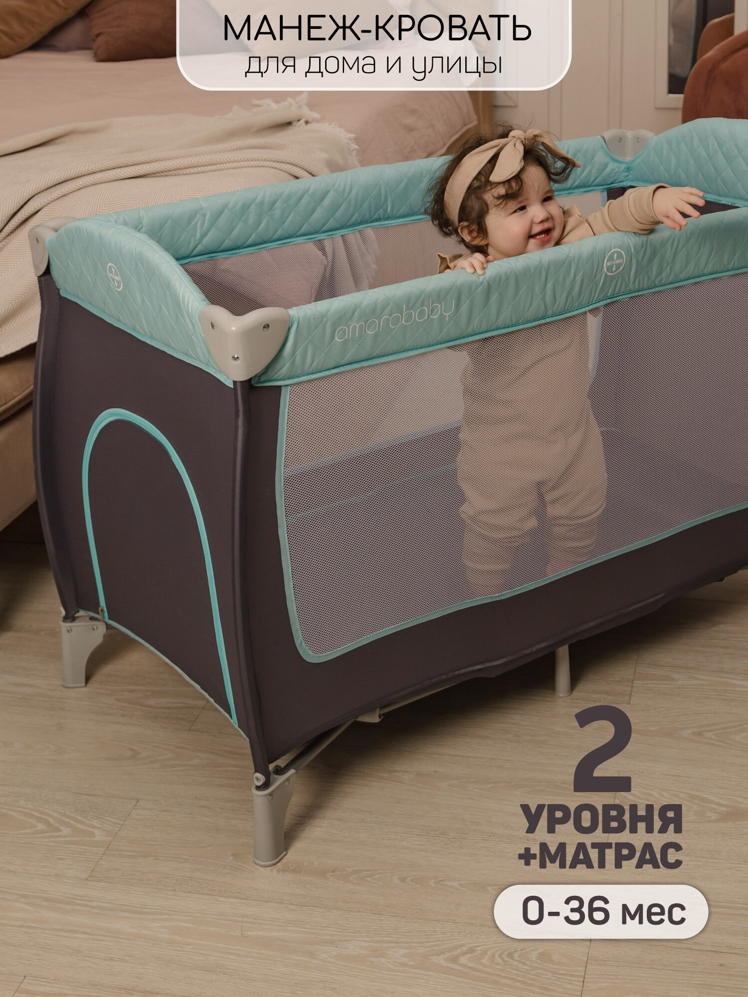 Манеж-кровать Amarobaby STITCH прямоугольный, серый информация: