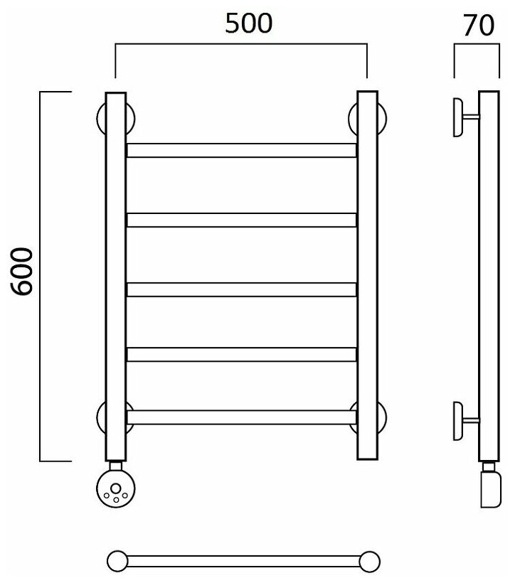 Электрический полотенцесушитель Акванерж прямая эконом 50 Ватт, 60 х 50 см, левый
