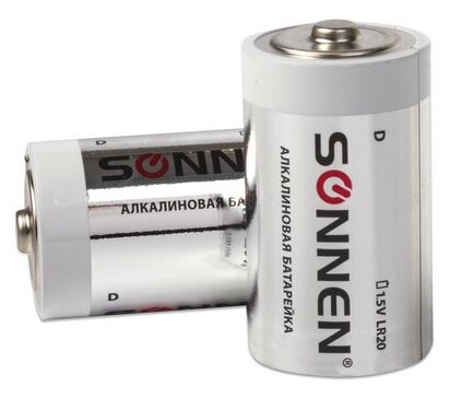 Батарейки комплект 2 шт, SONNEN Alkaline, D (LR20, 13А), алкалиновые, в блистере, 451091 (цена за 4 шт) информация: