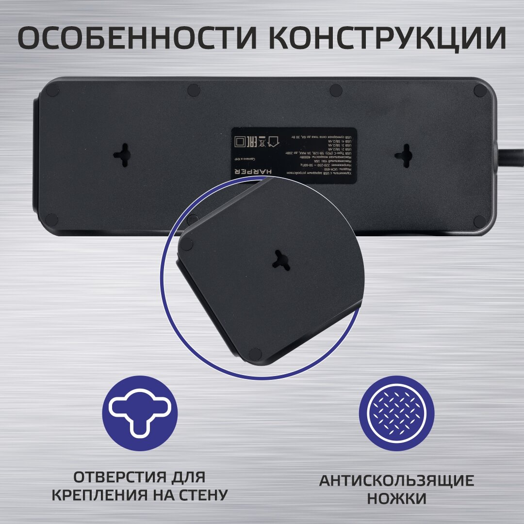 Сетевой фильтр с USB зарядкой HARPER UCH-650 Черный 5 149 ₽