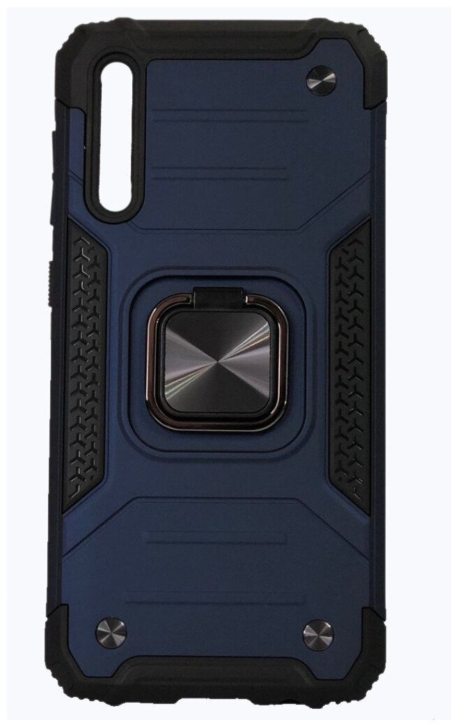 Противоударный чехол для Samsung Galaxy A50 A505 / A50s / A30s синий с пластиной для магнитного автодержателя и кольцом подставкой информация: