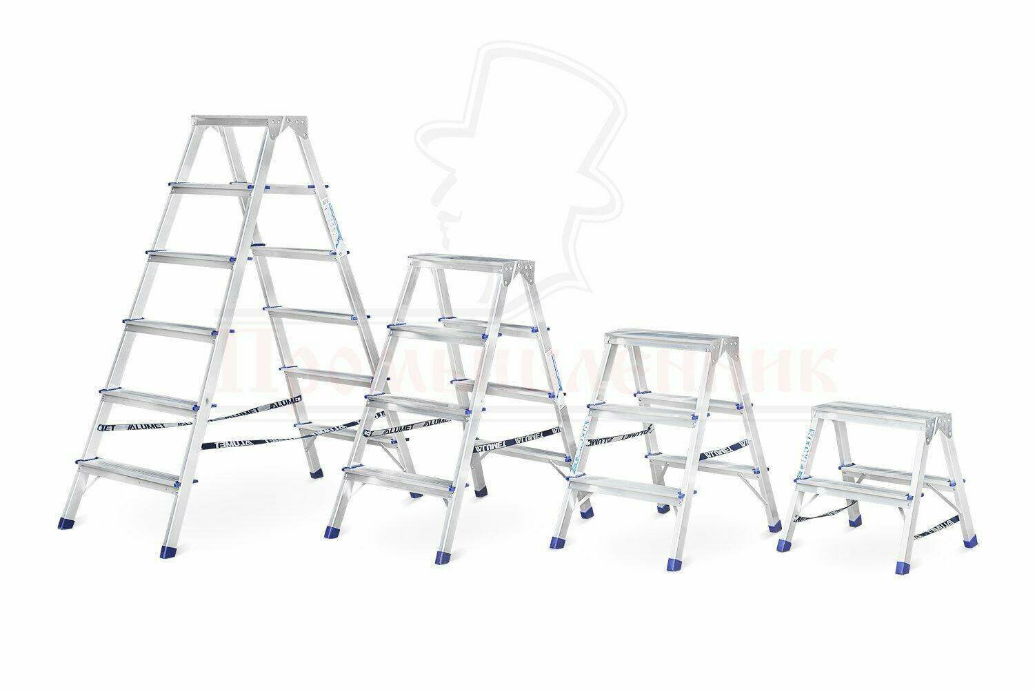Стремянка стальная с алюминиевыми ступенями двухсторонняя Новая Высота NV 1140, 2х6 ступеней 80 мм