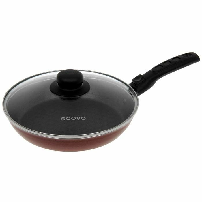 Отзывы на Сковорода «Альфа», d=22 см, съёмная ручка, стеклянная крышка, антипригарное покрытие, цвет бордовый