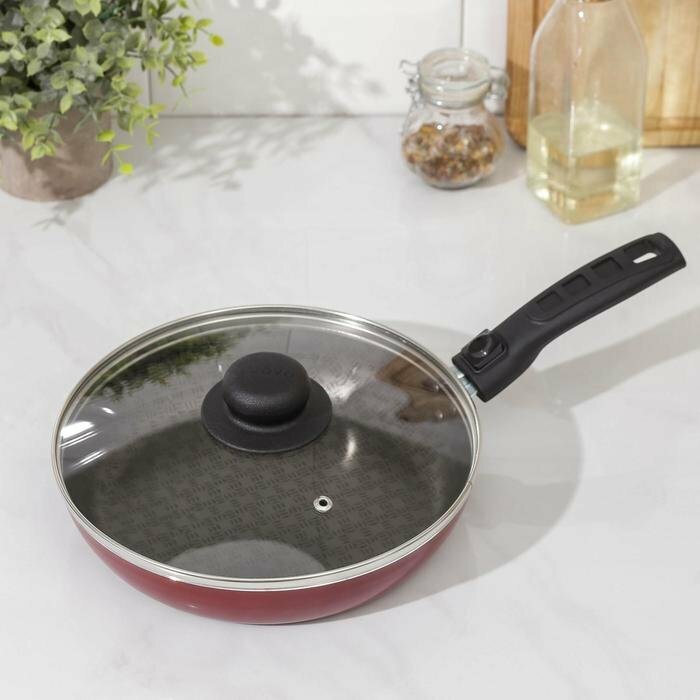 Сковорода «Альфа», d=22 см, съёмная ручка, стеклянная крышка, антипригарное покрытие, цвет бордовый информация: