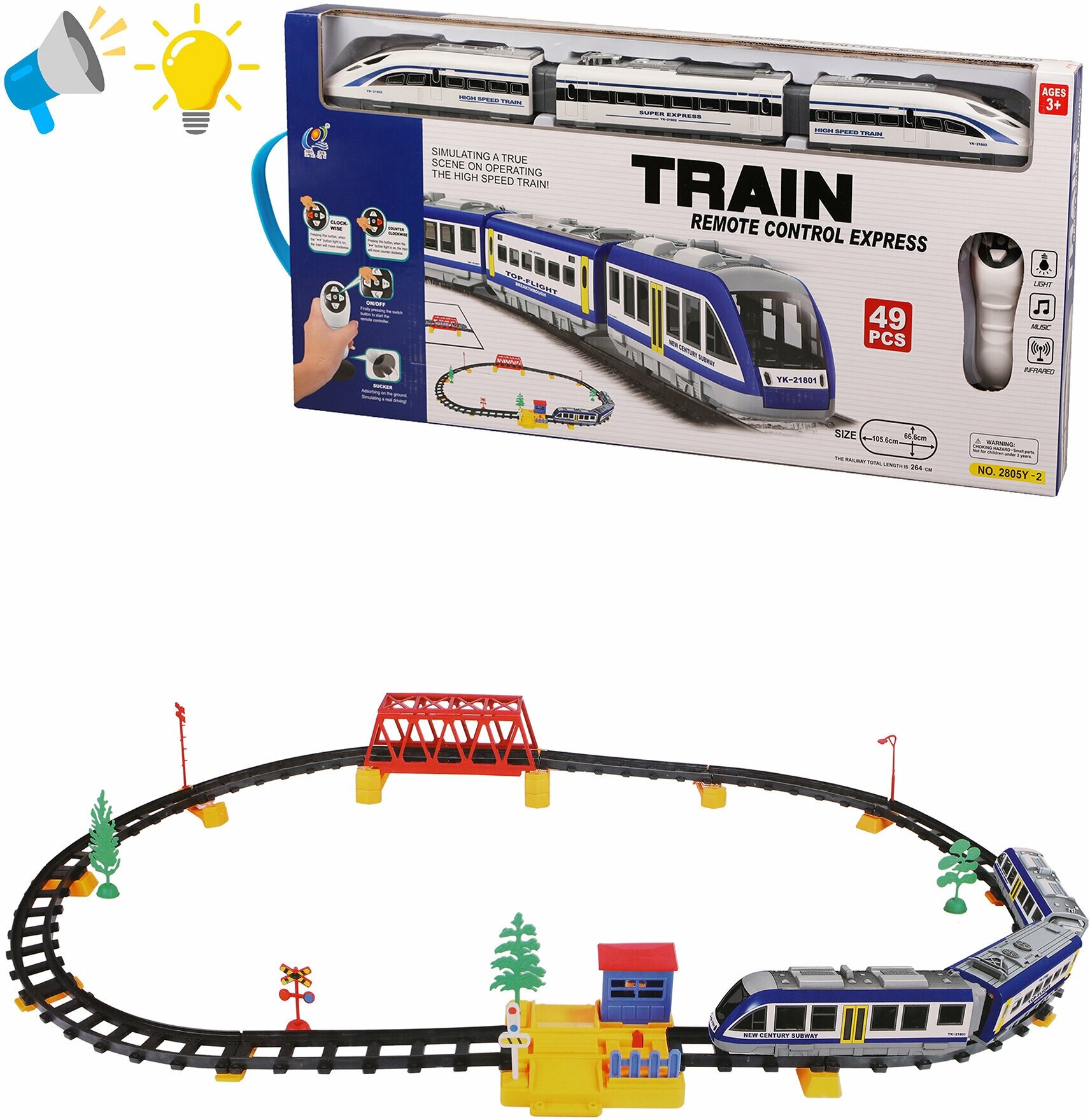 Игр.набор Железная дорога, ИК управление, свет, звук, в комплекте предметов 49шт., эл.пит.АА*5шт.не вх.в комплект, коробка информация: