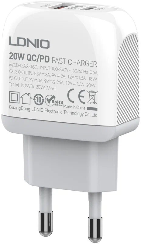 Отзывы на Сетевое ЗУ LDNIO A2316C/ + Кабель PD-L/ PD + QC 3.0/ 2 USB Auto-ID/ Выход: 5V_9V_12V, 20W/белый