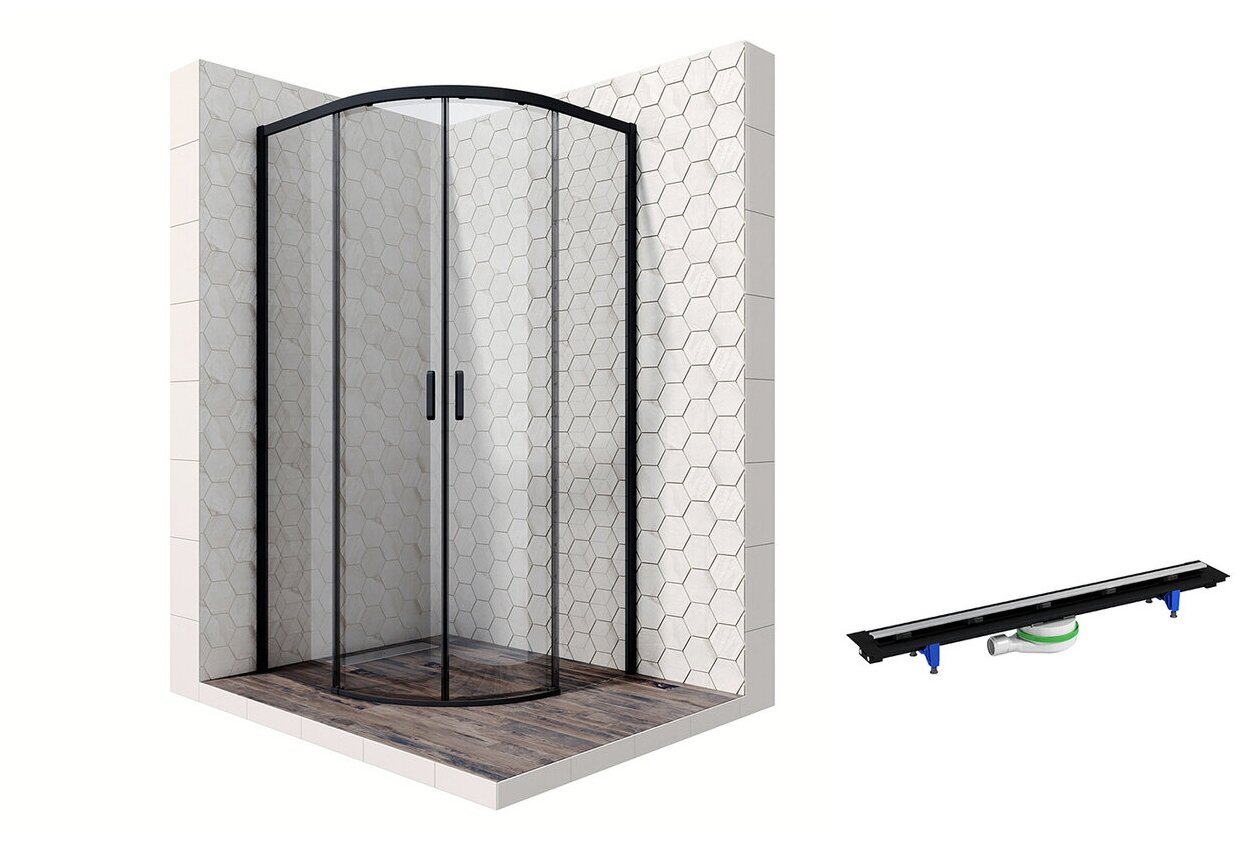 Комплект полукруглого душевого ограждения с линейным трапом Ambassador Queen Black 11011202-PR3, с EasyClean, 100 х 100 см информация: