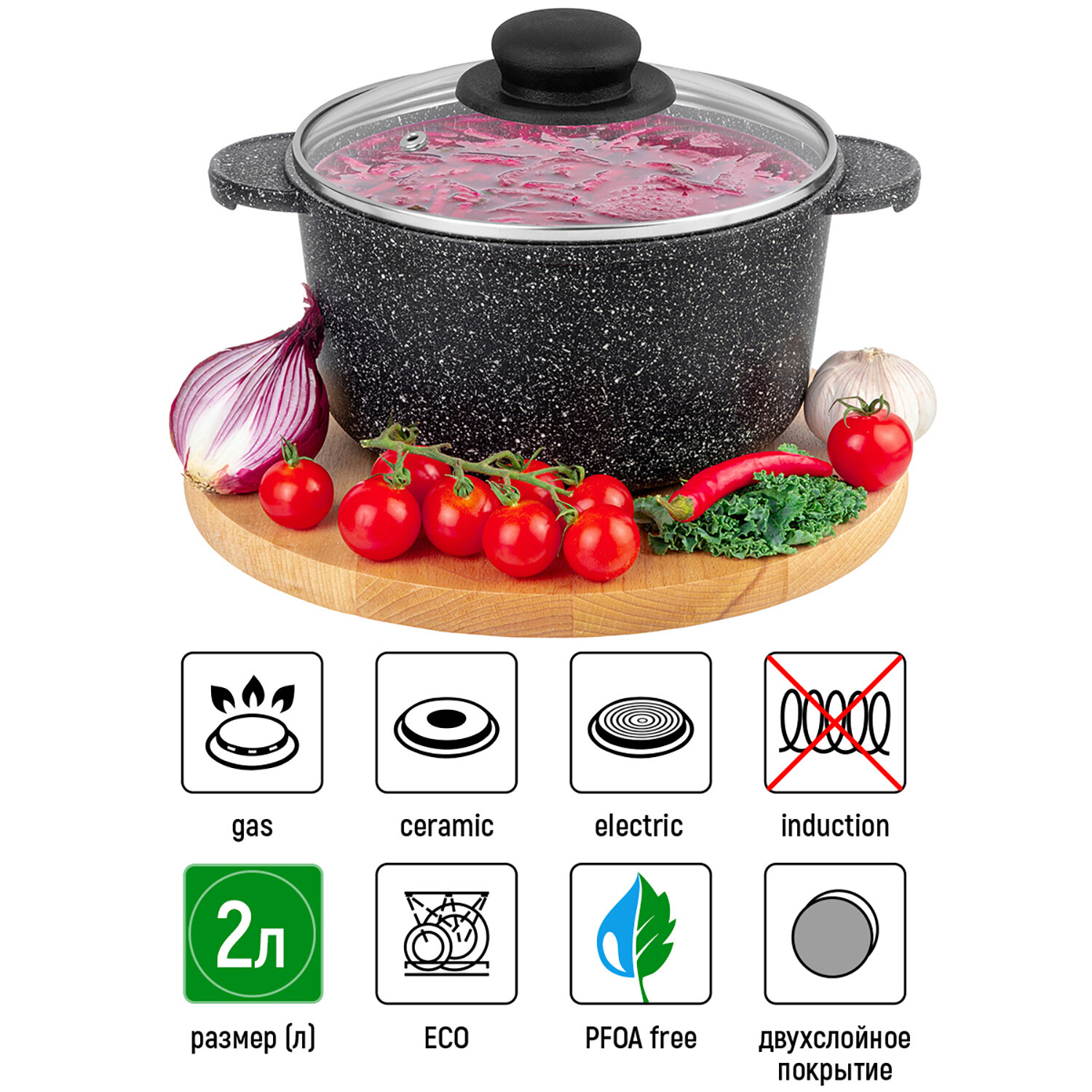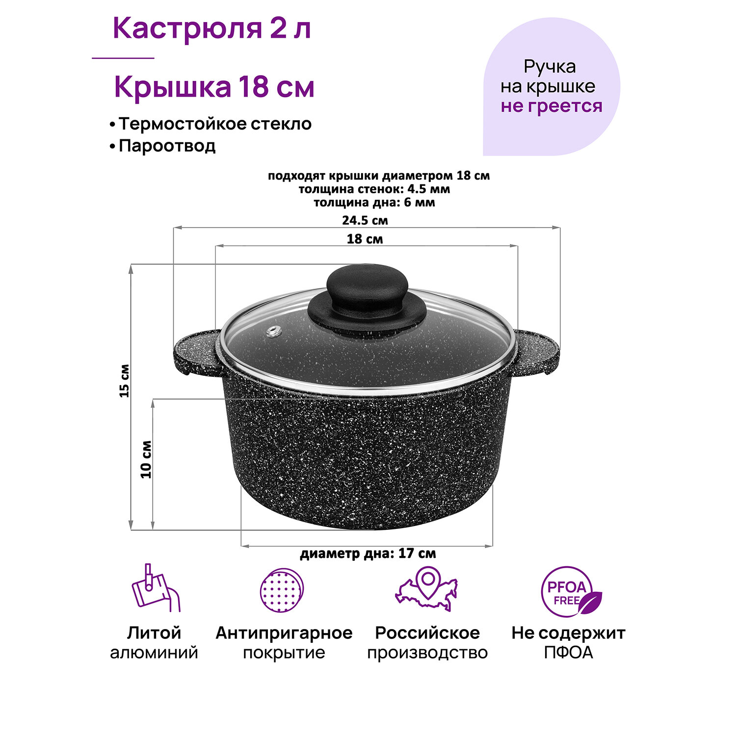 Кастрюля 2 л гармония вкуса "Черный мрамор" С крышкой ф18, 24,5*19*15 см информация: