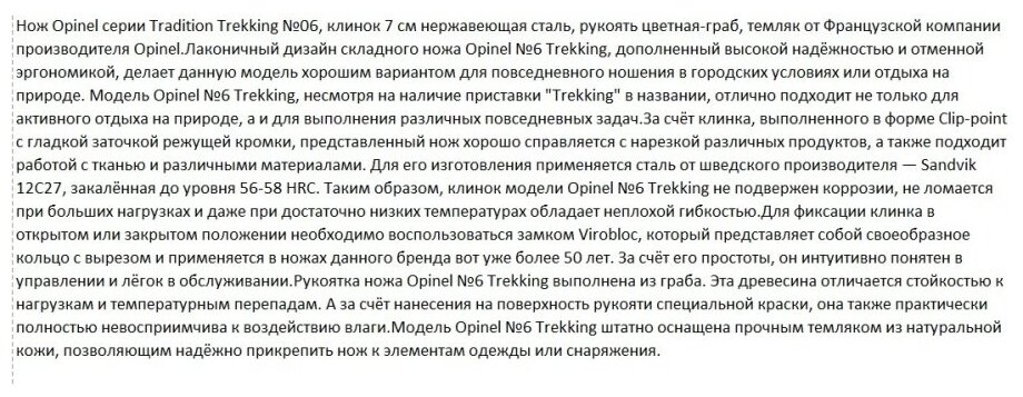 Отзывы на Нож Opinel серии Tradition Trekking №06, клинок 7см, шалфей 002203 Opinel 2203