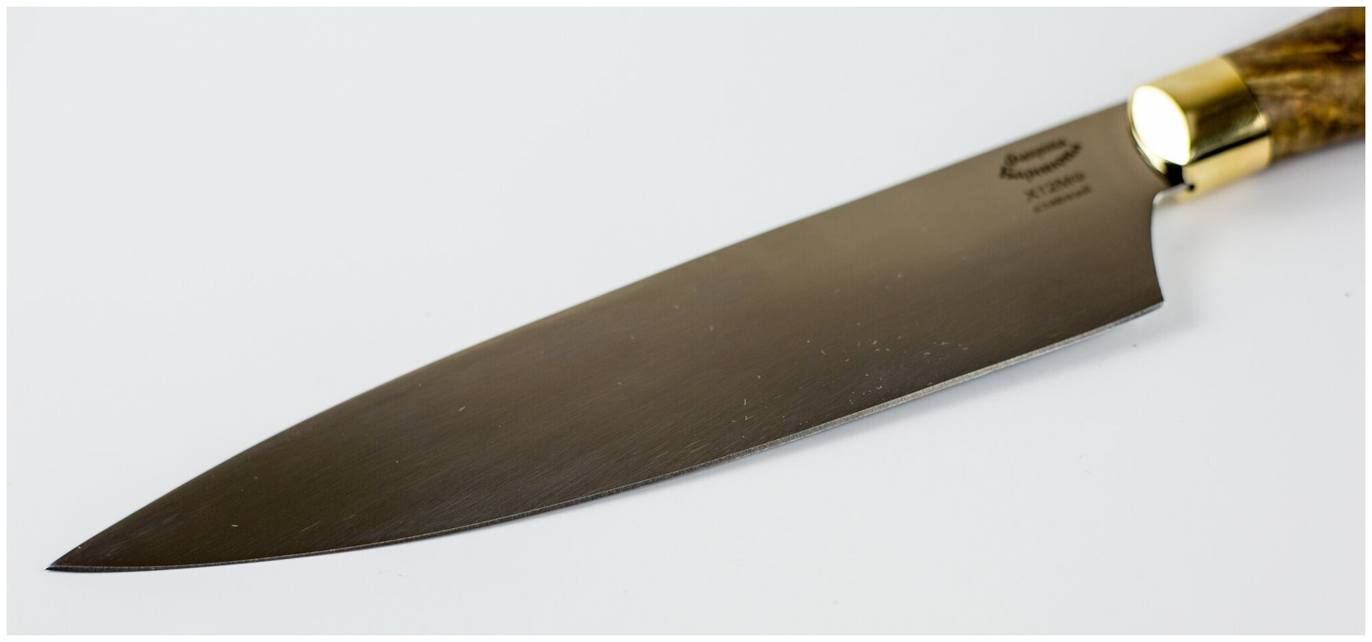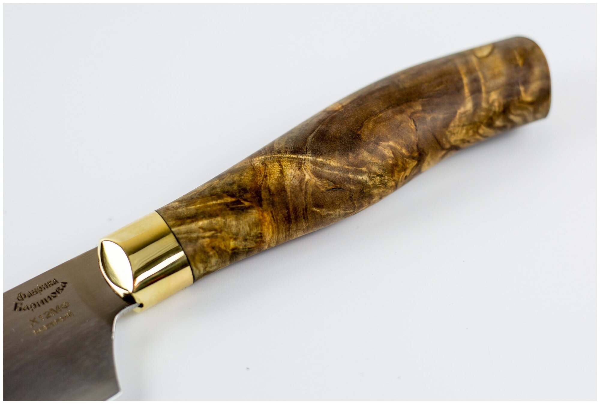 10 цен на Нож кухонный Шеф-1, сталь Х12МФ латунь, карельская береза