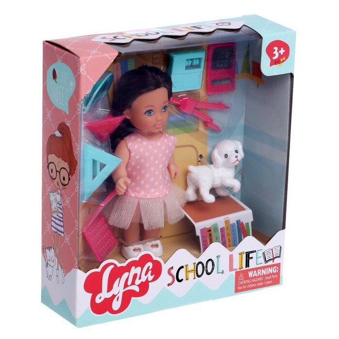 Кукла малышка Ученица Lyna с питомцем и аксессуарами, микс информация: