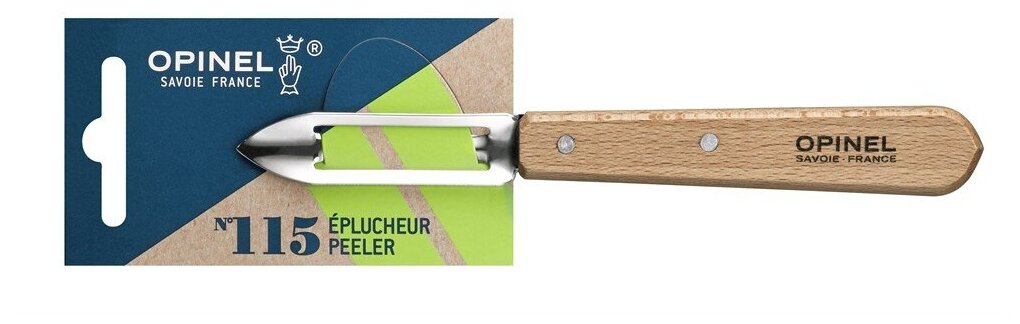 Нож для чистки овощей Opinel №115, деревянная рукоять, нержавеющая сталь, блистер, 001928