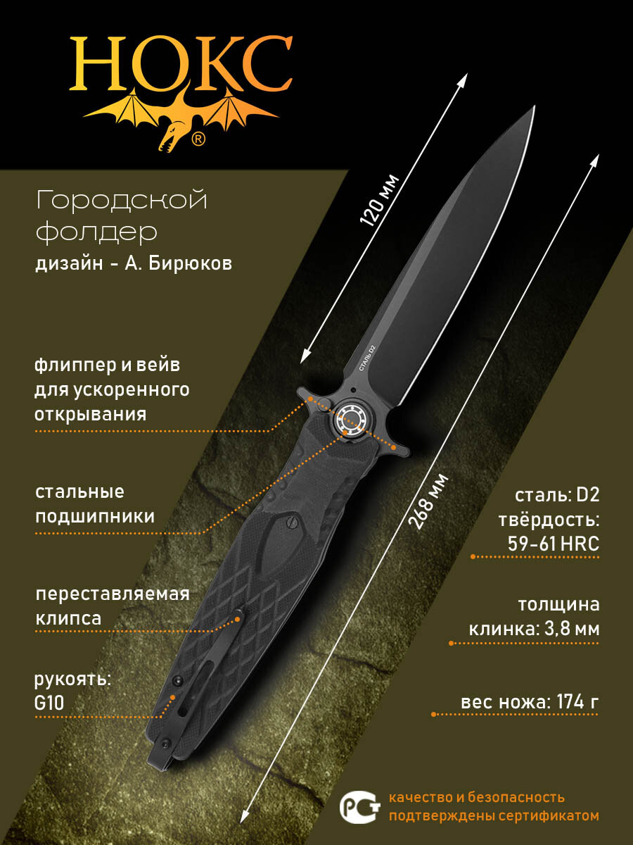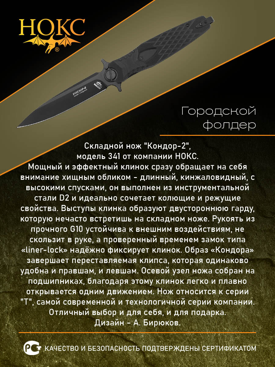 Нож складной нокс 341-700401 (Кондор-2), городской фолдер, сталь D2 информация: