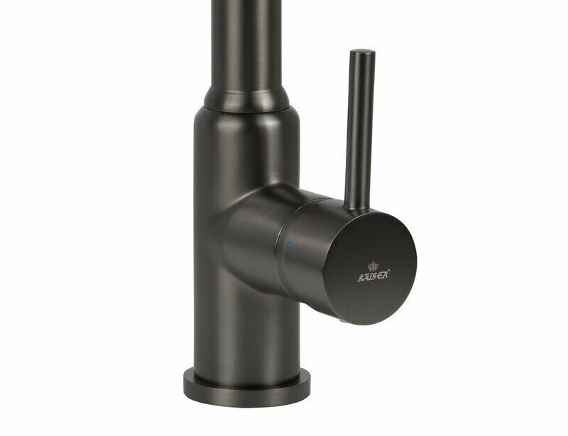 Смеситель для кухни, мойки с высоким изливом с подключением к фильтру для питьевой воды поворотный. Сантехника KAISER Teka 13044-15, черный матовый информация: