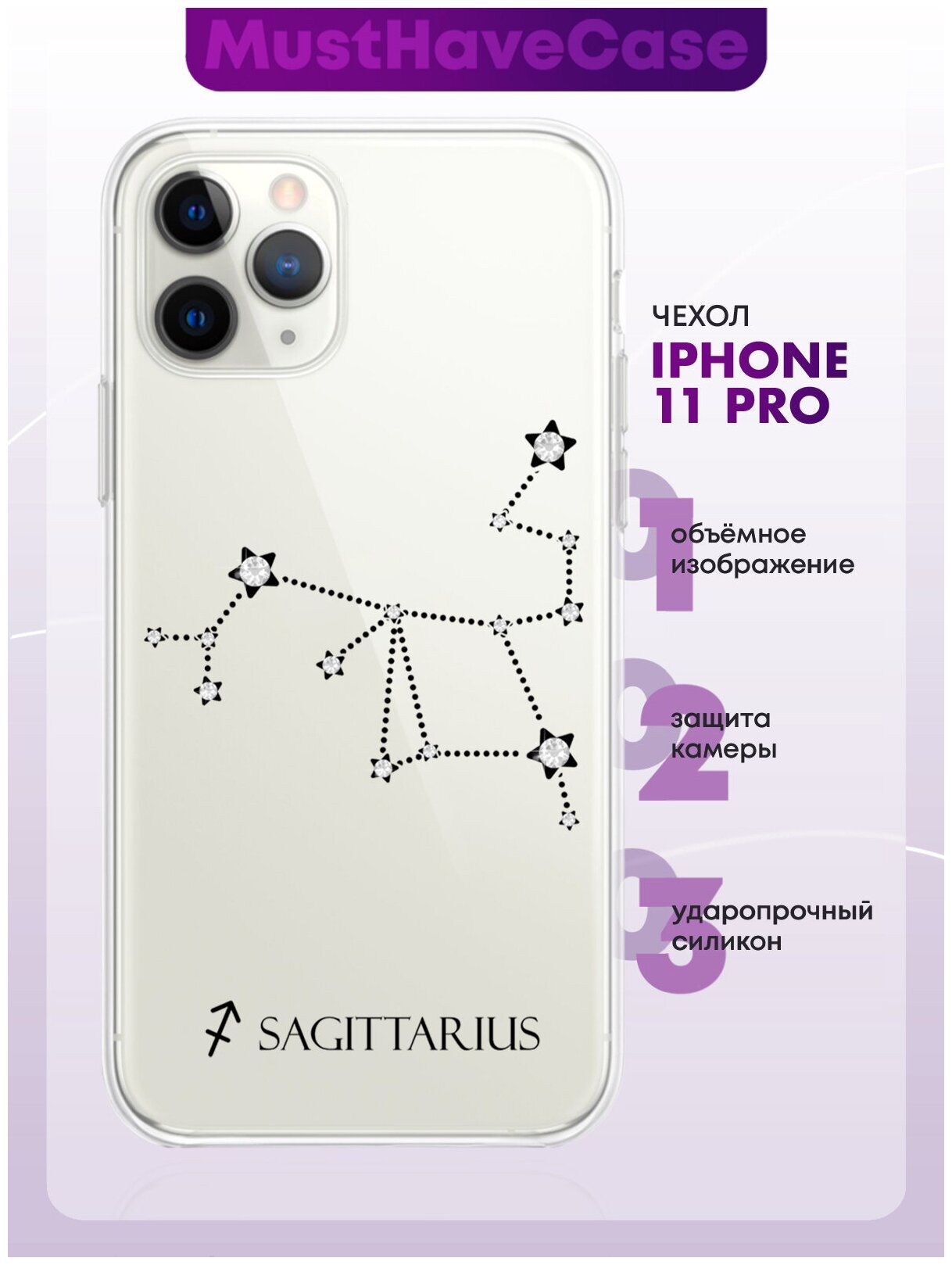 Отзывы на Прозрачный силиконовый чехол с кристаллами Lux для iPhone 11 Pro Знак зодиака Стрелец Sagittarius для Айфон 11 Про