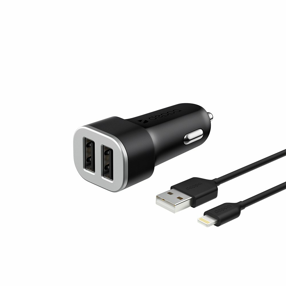 Отзывы на Автомобильное зарядное устройство Deppa 2 USB 2.4А + кабель Lightning, MFI черный
