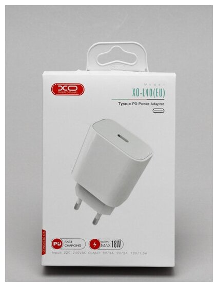 Сетевое зарядное устройство Адаптер Блок питания XO L40 PD 18W Type-C USB-C белое информация: