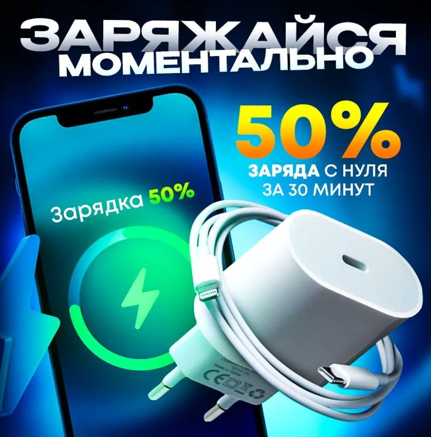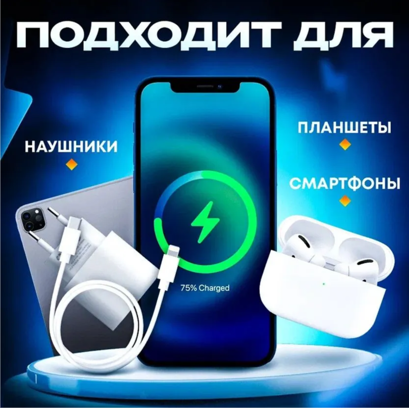 Комплект Premium: быстрое сетевое зарядное устройство для Apple IPhone/IPad/Air Pods 20W с кабелем Type-C - Lightning