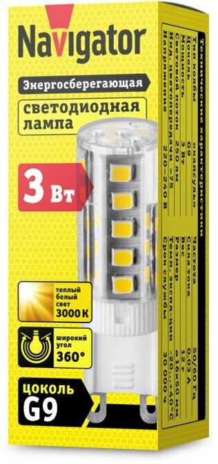 Лампа светодиодная 71 993 NLL-P-G9-3-230-3K 3Вт 3000К тепл. бел. G9 250лм 220-240В, NAVIGATOR 71993 (1 шт.)